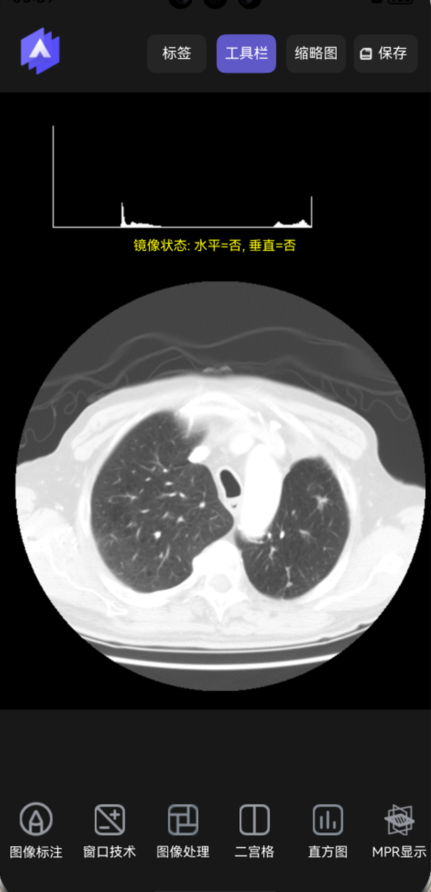 显示直方图。以直方图形式显示出DICOM图像的统计信息。
